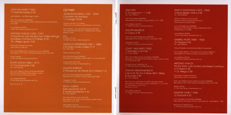 本专辑是为了庆祝约翰·威廉斯杰出的音乐成就与录音宝藏,收录的39首曲目是近年來最具代表性的录音,由伟大的吉他经典浪漫如阿尔贝尼兹,到令人心醉的巴赫的古典乐章,世界民族文化融合于吉他的动人旋律,而电影主題曲如「猎鹿人」、「教会」的戏剧魅力在他的吉他表現下更是扣人心弦。